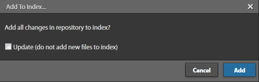 Now let’s make some changes to the code and commit it to master. Change the code and click Add to index from the Git menu.