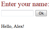 02:15 The site will launch. Test it by entering your name and pressing OK. You should see a greeting displayed on the screen.