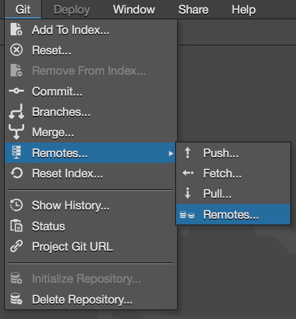 03:50 Now you have authorized codenvy with GitHub you must add the URI to your remote repository. Go to Git>Remotes>Remotes and enter the location and name of your repository.