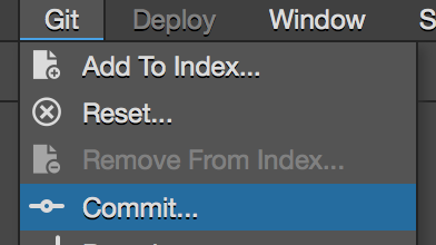 02:45 Now commit those changes to the local repository. Select Commit from the Git menu and enter a comment in the dialogue box that pops up.